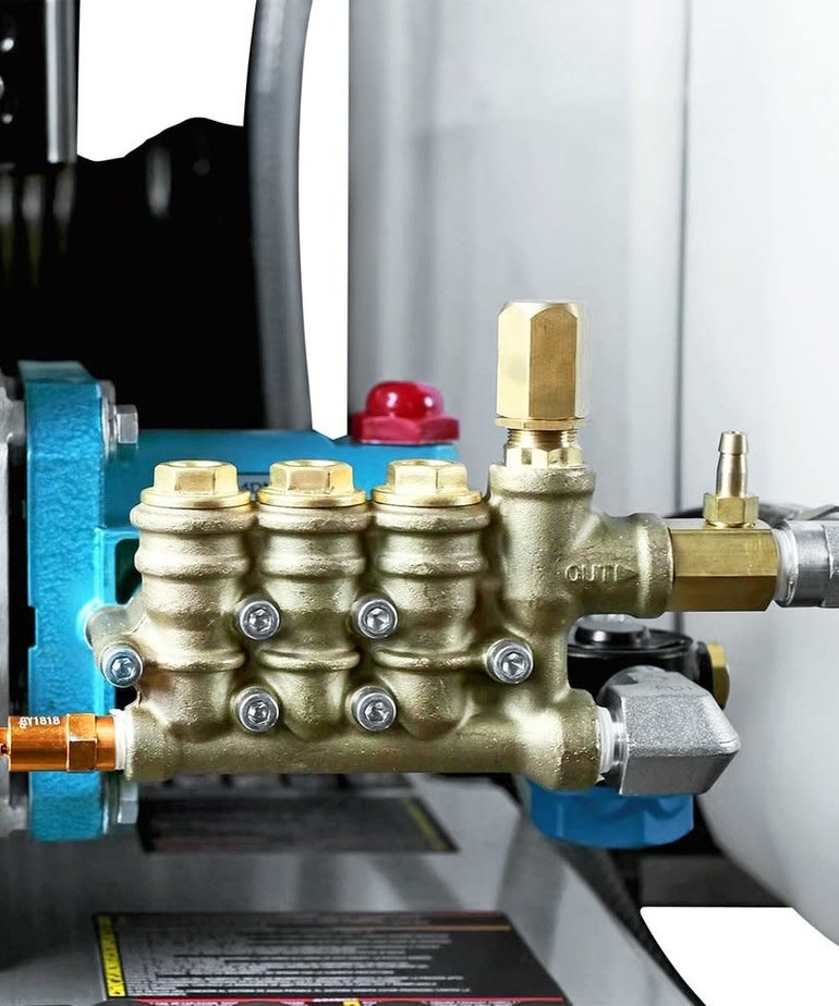 Features a cat pumps industrial triplex plunger pump.